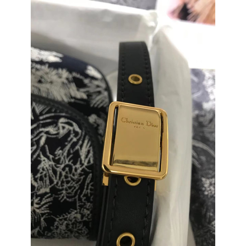 DetailEmbroidered Toile de Jouy motif and finished with antique gold-tone hardware. The detachable, adjustable shoulder strap with military buckle fits in the hand, over the shoulder or across the body.